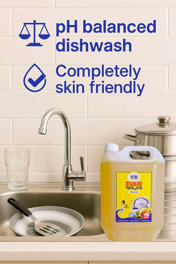 YPM dishwash gel is ideal for stainless steel, crockery, non stick cookware, cultery, taps, shower, ceramic floor, plastic etc. Its power removes dirt & oiliness easily. It removes yellow residue on white plates. Safe on hands.